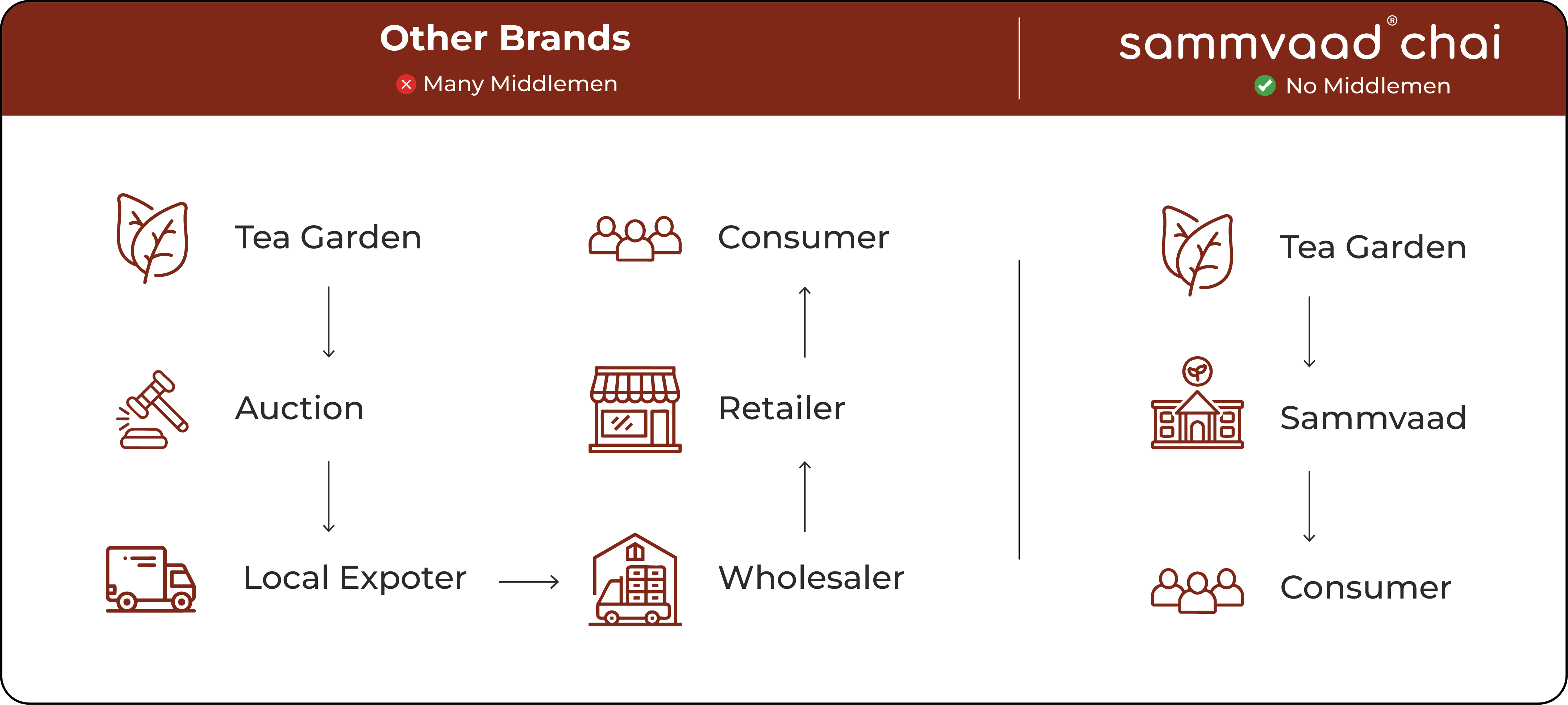 Sammvaad Chai is the finest Indian CTC Chai made from blending teas from the best estates of Assam and Doars with no artificial flavors, no shortcuts, no compromises.
