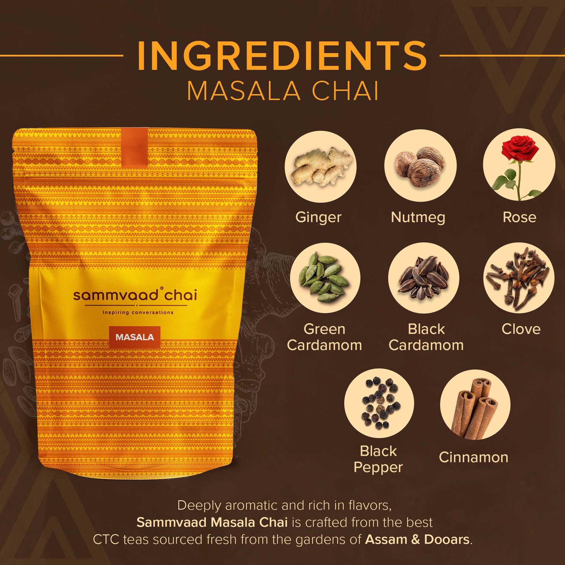 Bold Assam & Dooars Chai blended with real cardamom, clove, and cinnamon - creating a kadak masala chai that’s rich, full-bodied, and comforting.